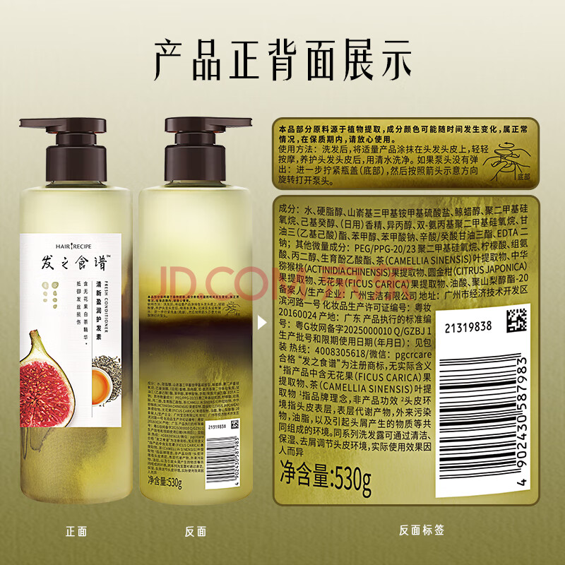 商品相册:髮の食谱发之食谱无花果护发素柔顺干枯毛躁修护顺滑530g润发乳京东自营第