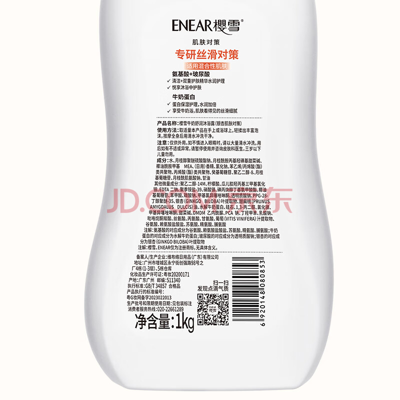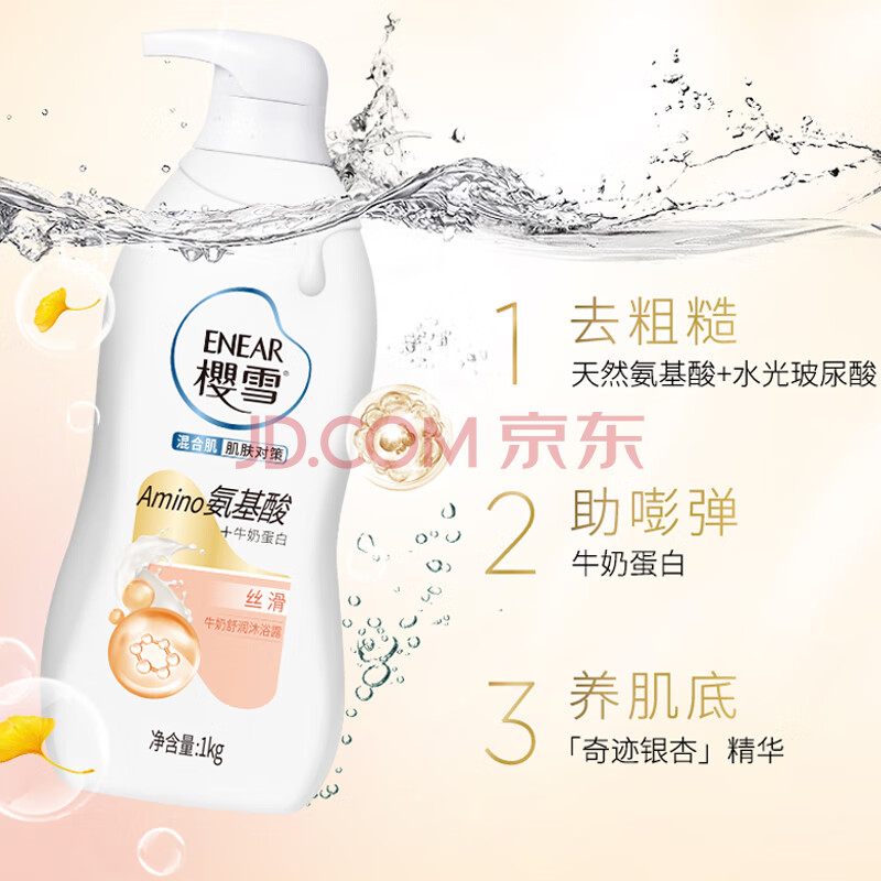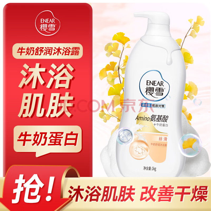 商品相册:樱雪(ENEAR)保湿沐浴露 氨基酸玻尿酸牛奶舒润沐浴乳红颜润养1kg第
