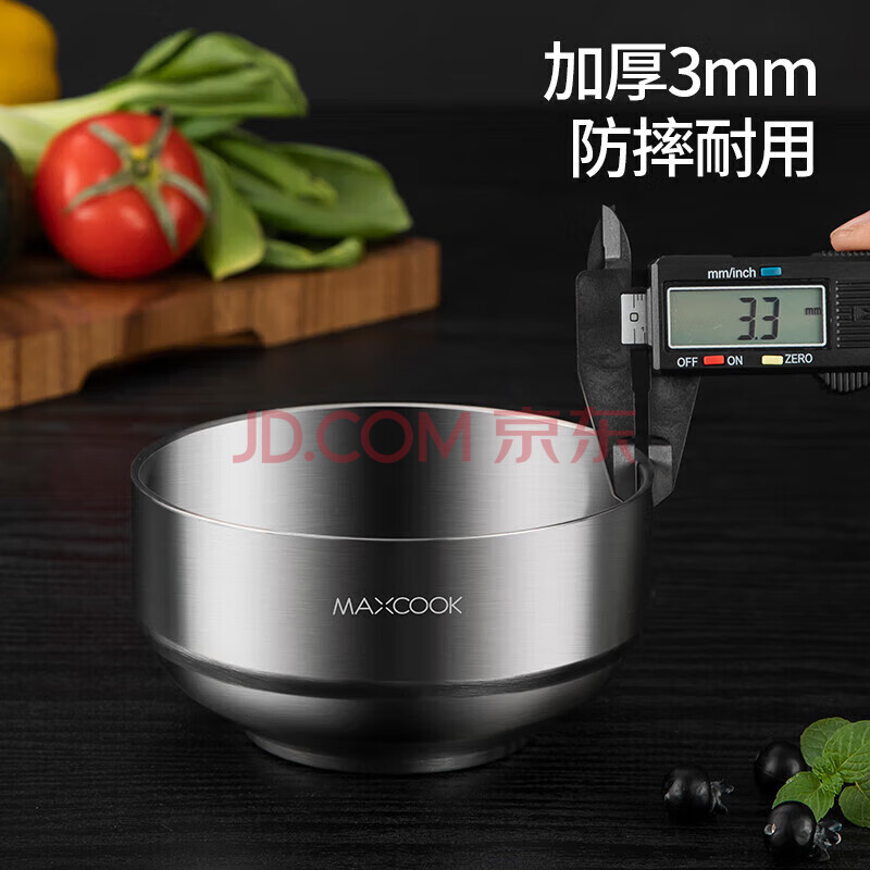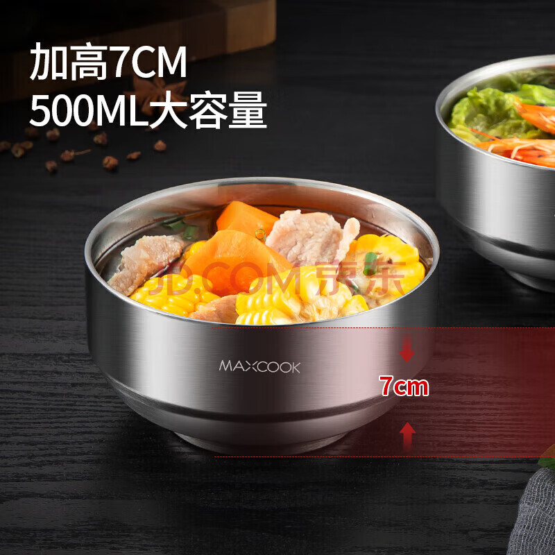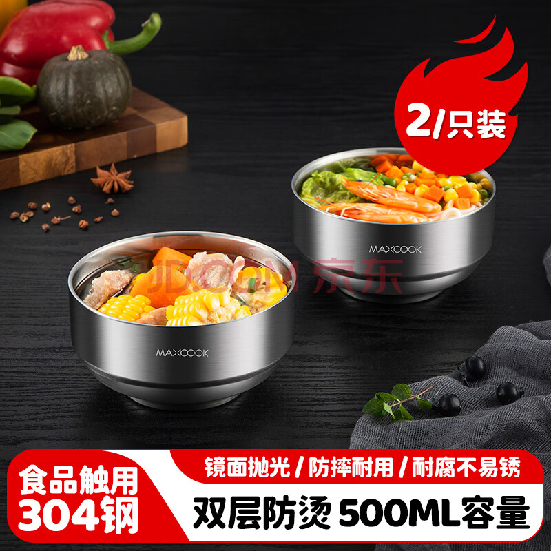 商品相册:美厨(maxcook)304不锈钢碗 汤碗双层隔热 餐具面碗13CM(2只装) MCWA615第