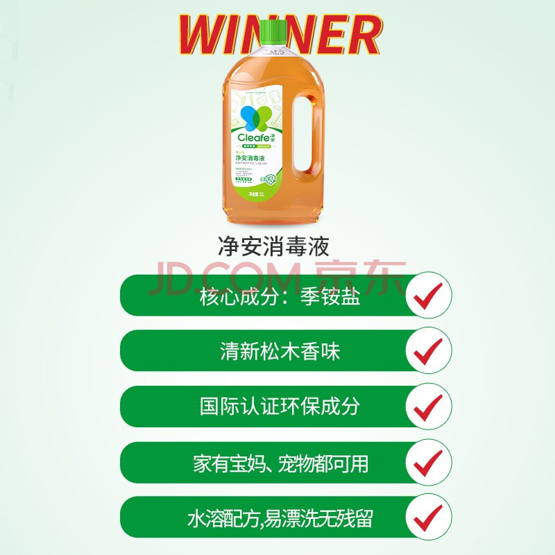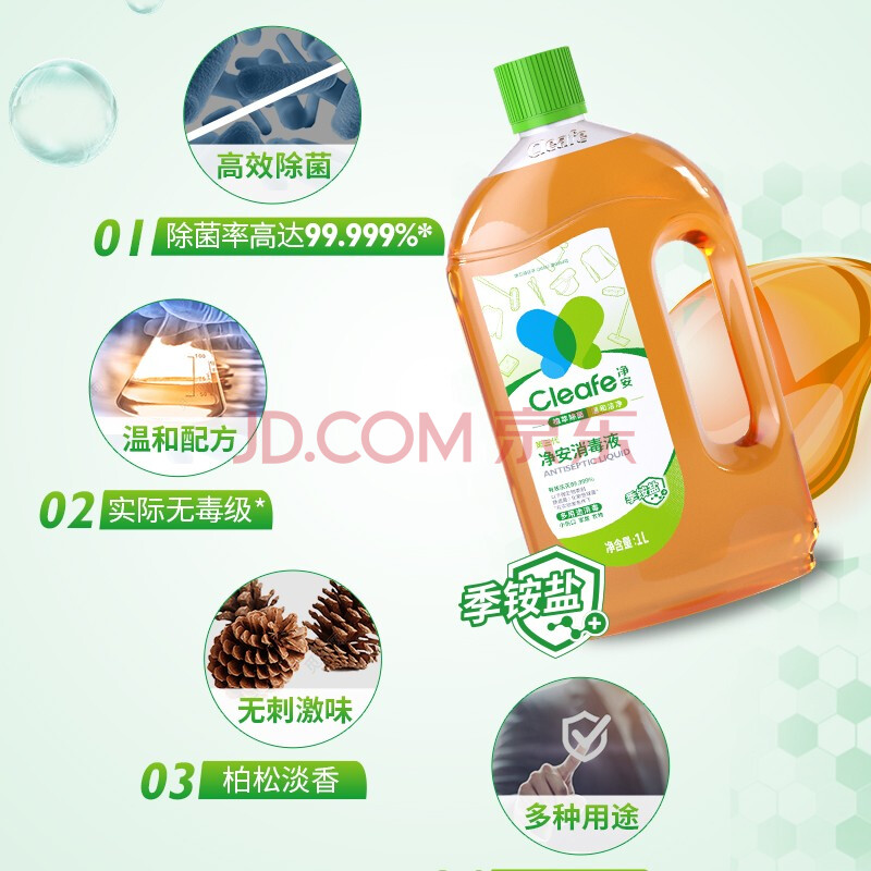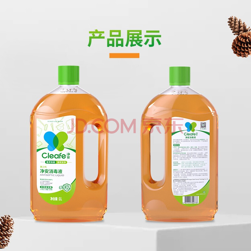 商品相册:净安(Cleafe)季铵盐消毒液1L衣物居家室内地板消毒宠物环境消毒杀菌率99.999%第