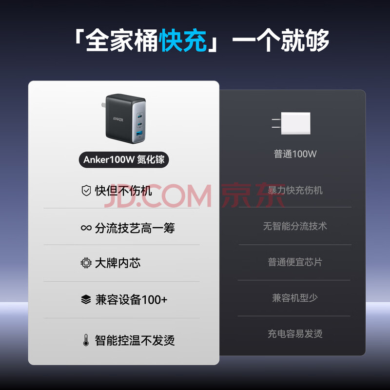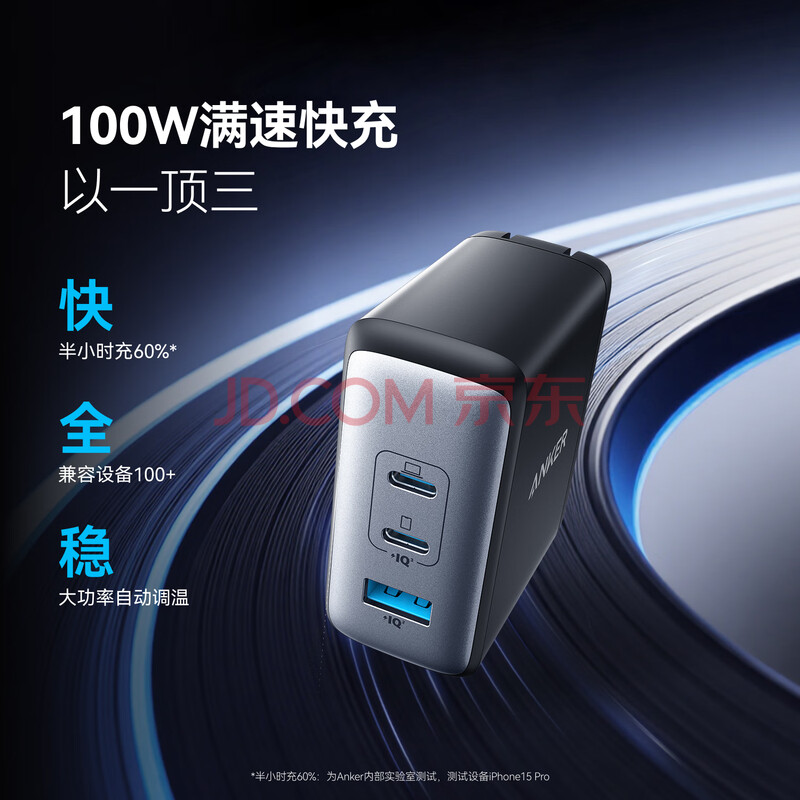 商品相册:ANKER安克100W氮化镓充电器数据线套装 多口pd大功率type-c快充使用苹果17MacBook华为笔记本电脑插头第