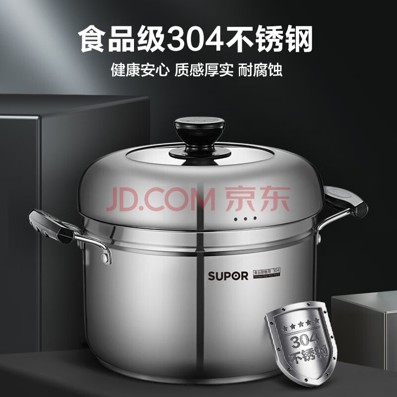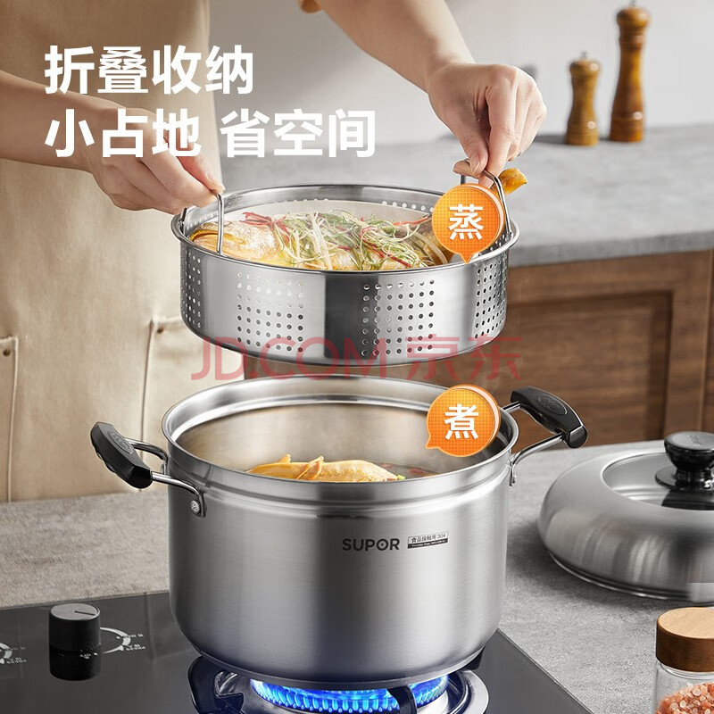商品相册:苏泊尔SUPOR 蒸滋味复底304不锈钢汤蒸多用锅22cm汤锅单层蒸笼SZ22S1第