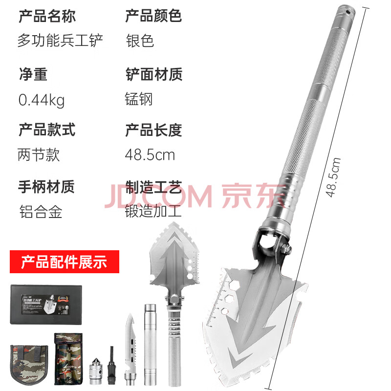 商品相册:趣行 工兵铲多功能折叠兵工铲 户外野营应急工具锰钢铲铁锹2节铲第