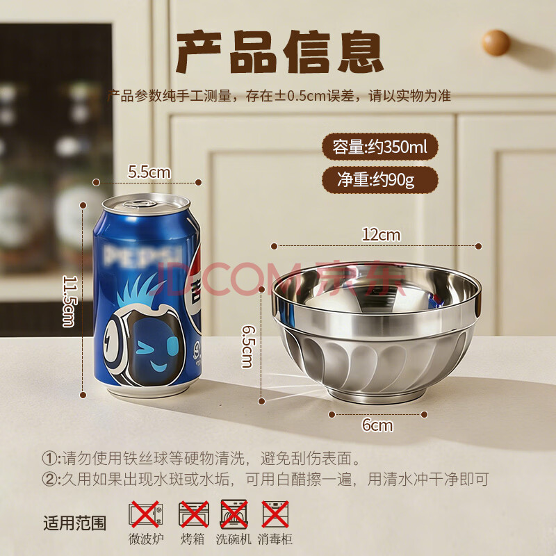 商品相册:美厨(maxcook)304不锈钢碗12CM 汤碗餐具面碗 双层隔热 MCWA-094第1张/共8