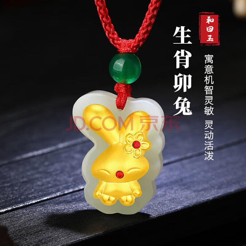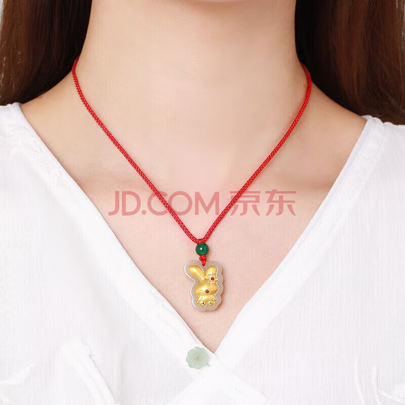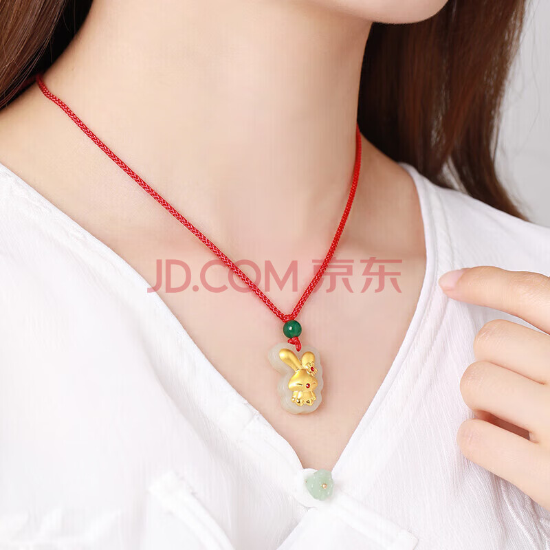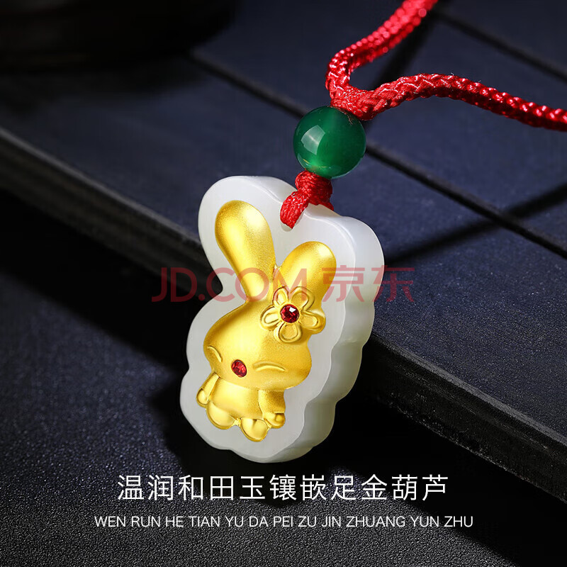 商品相册:蒂蔻(Tico)本命年生肖兔金镶玉吊坠女款红绳项链镶嵌和田玉吊坠送宝宝小孩子第1张/共5