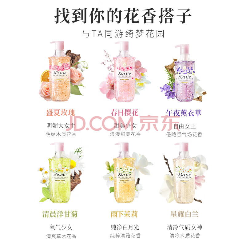 商品相册:蔻斯汀(Kustie)新升级茉莉花瓣沐浴露720g 香氛沐浴补水保湿第
