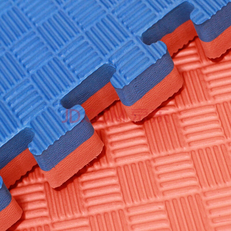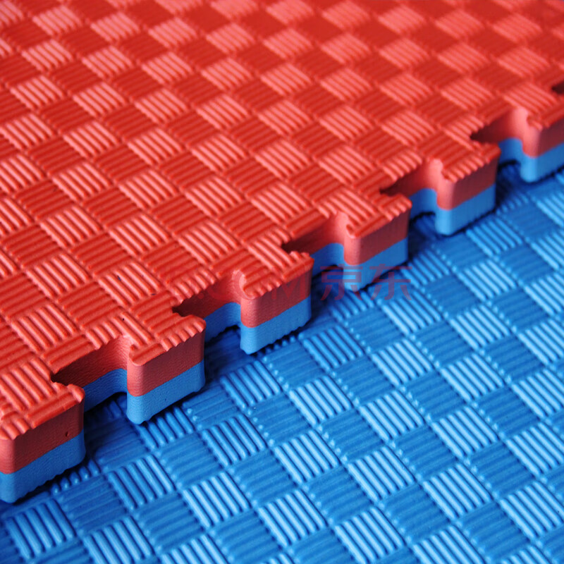 商品相册:铁骥跆拳道地垫加厚1*1米专业训练散打武术摔跤垫子防滑舞蹈泡沫地垫 红蓝五道纹3A级无味3cm厚第