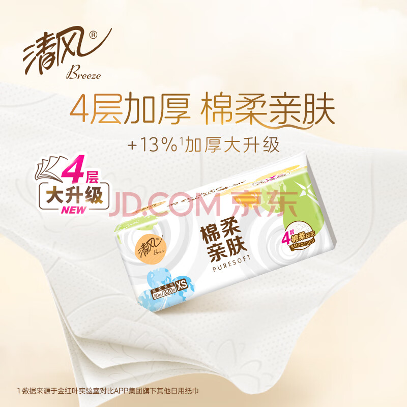 商品相册:清风抽纸4层80抽*24包 柔软亲肤 家用面巾纸餐巾纸 整箱 新老包装交替第