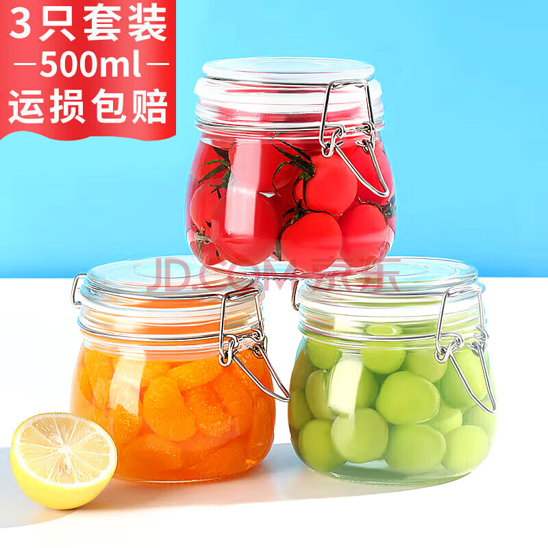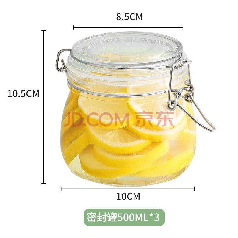 商品相册:拜杰玻璃密封罐500ml3只装罐头燕窝果酱瓶蜂蜜罐泡菜坛泡酒瓶分装瓶第