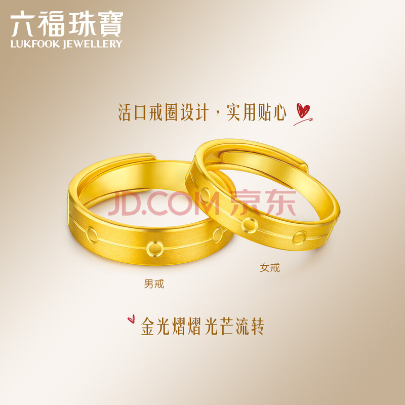 商品相册:六福珠宝 黄金戒指情缘足金实心情侣结婚礼物女 计价F63TBGR0010 约4.88克第1张/共9