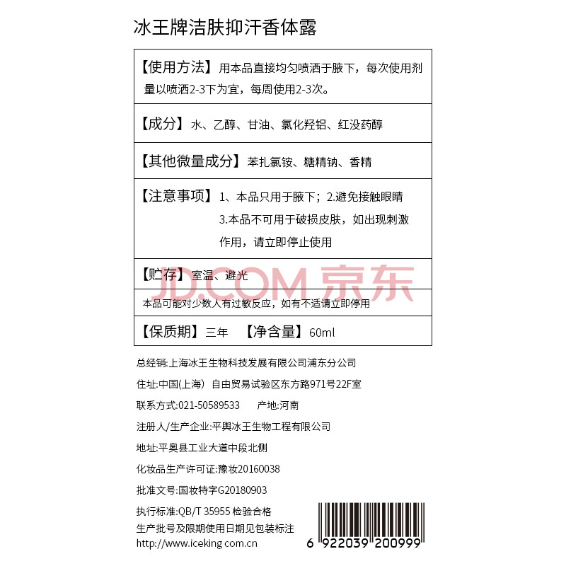 商品相册:冰王狐克狐臭喷雾60ml止汗露去腋臭汗臭净味水香体露男士专用女腋下根第