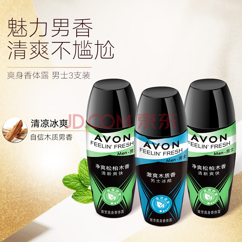 商品相册:雅芳 AVON 走珠香体露爽身露男士3支装-净爽松柏木香*3 清香干爽留香第
