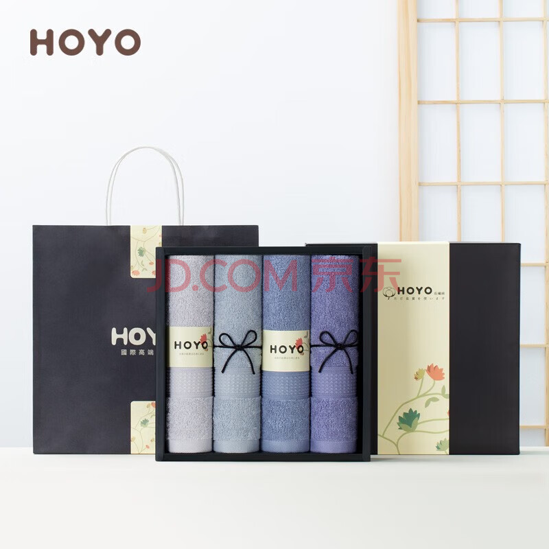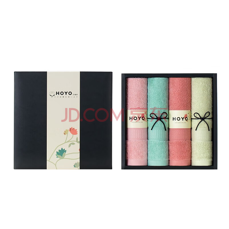 商品相册:HOYO日本长绒棉A类纯棉荷花毛巾礼盒4条装柔软吸水家用公司团购定制 第