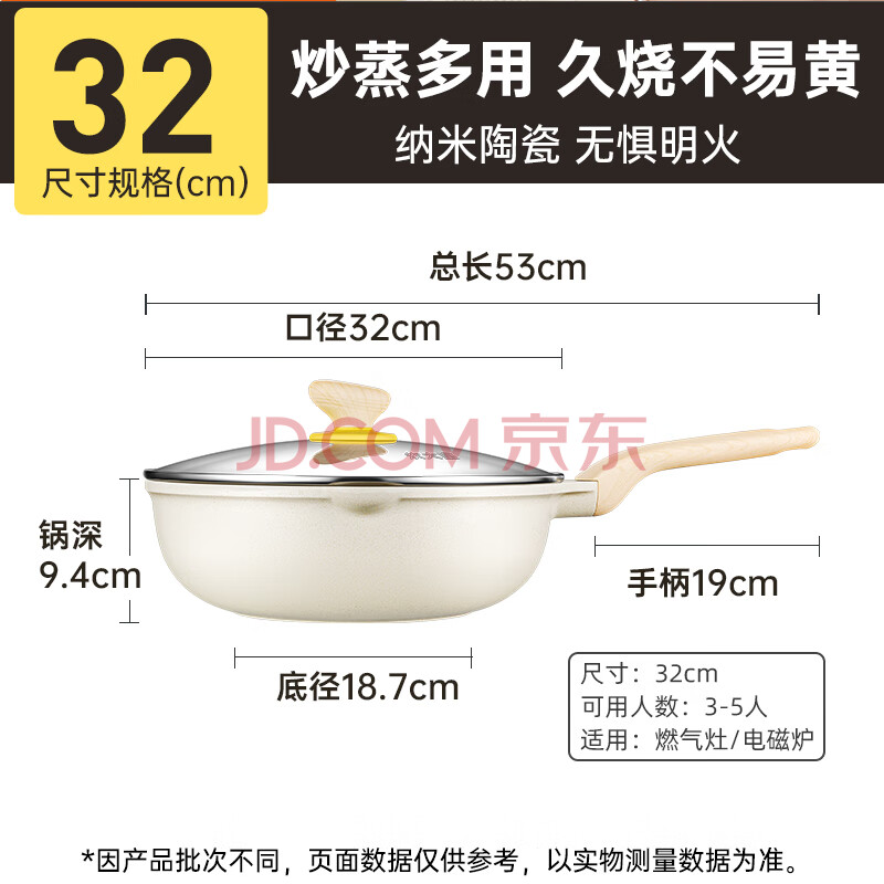 商品相册:炊大皇炒锅 麦饭石色聚油不粘锅多功能少油烟炒菜锅平底32cm 电磁炉通用第