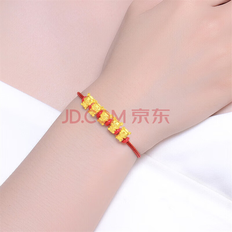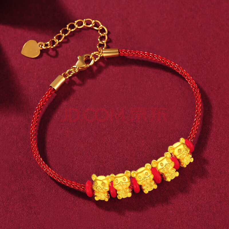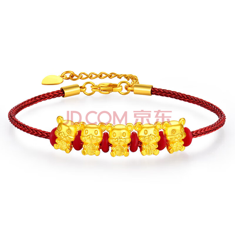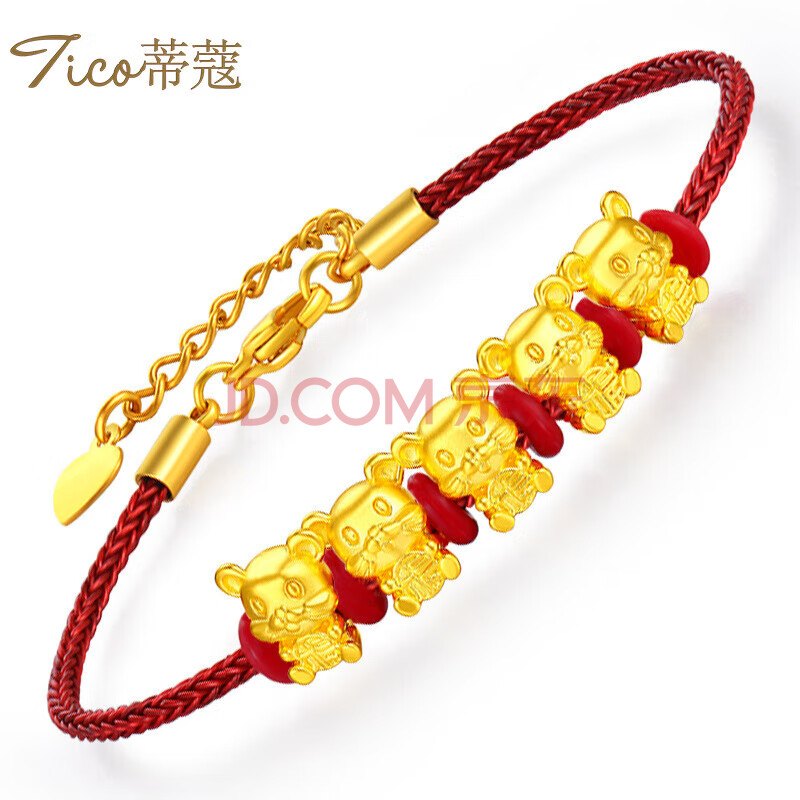 商品相册:蒂蔻(Tico)生日礼物本命年足金生肖五福鼠黄金转运珠手链女红绳5D金小老鼠第