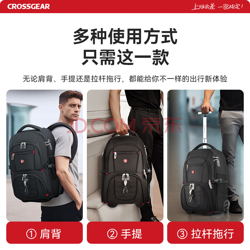 商品相册:CROSSGEAR拉杆旅行包大容量书包17.3吋电脑包双肩背包男商务出差行李包学生第