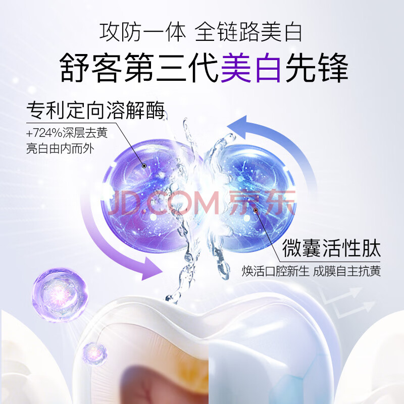 商品相册:舒客美白智感白牙膏去渍去黄除口臭抑菌含氟防蛀清新口气120g新老随机第