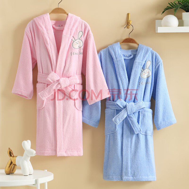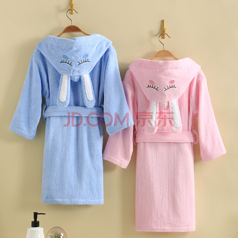 商品相册:竹一百 纯棉儿童睡袍大童加厚浴袍男童女童卡通毛巾料家居浴衣 L 蓝色第1张/共8