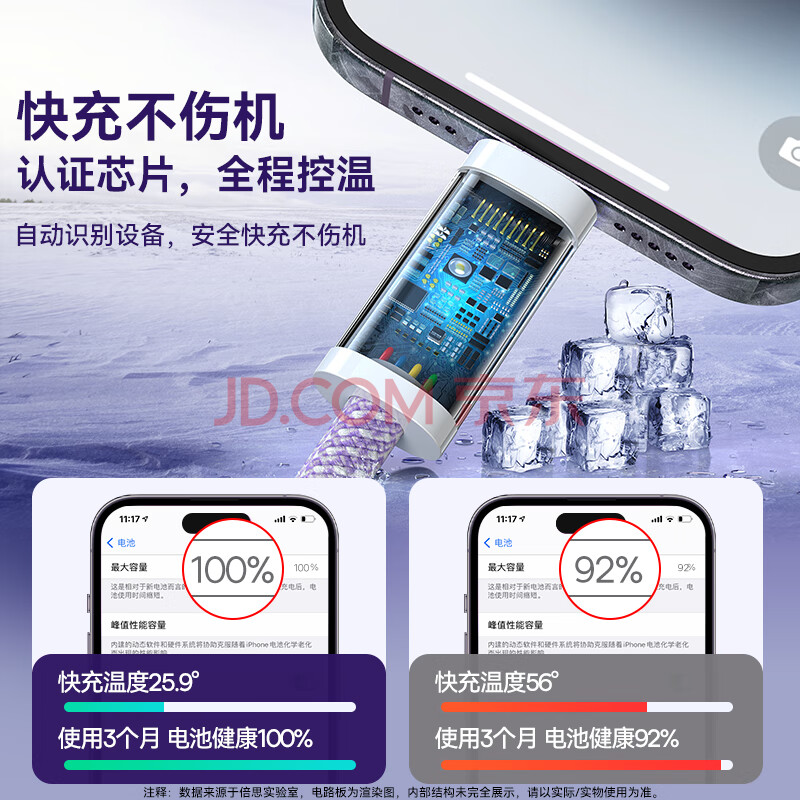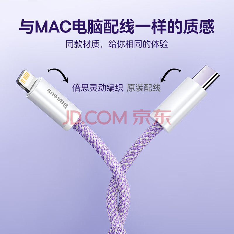 商品相册:倍思苹果数据线PD20/18W快充线Type-c to lightning充电线适用iPhone14/13Pro Max/12/11手机车载1米紫第