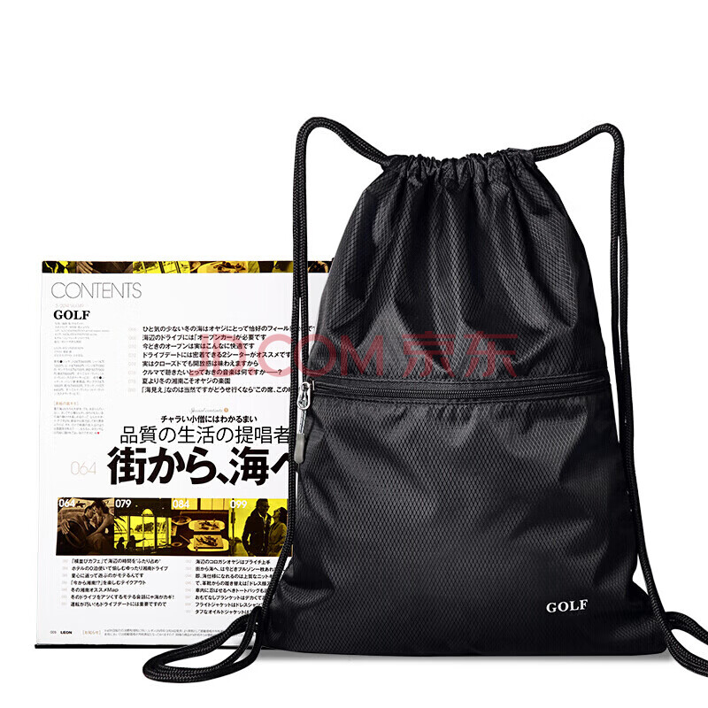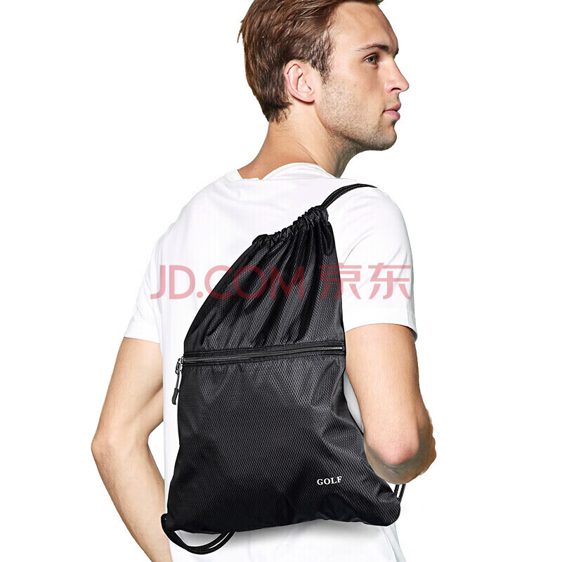 商品相册:高尔夫GOLF双肩包男士运动健身包简易户外旅行背包大容量轻便抽绳尼龙收纳包 465*350*10MM 黑色第