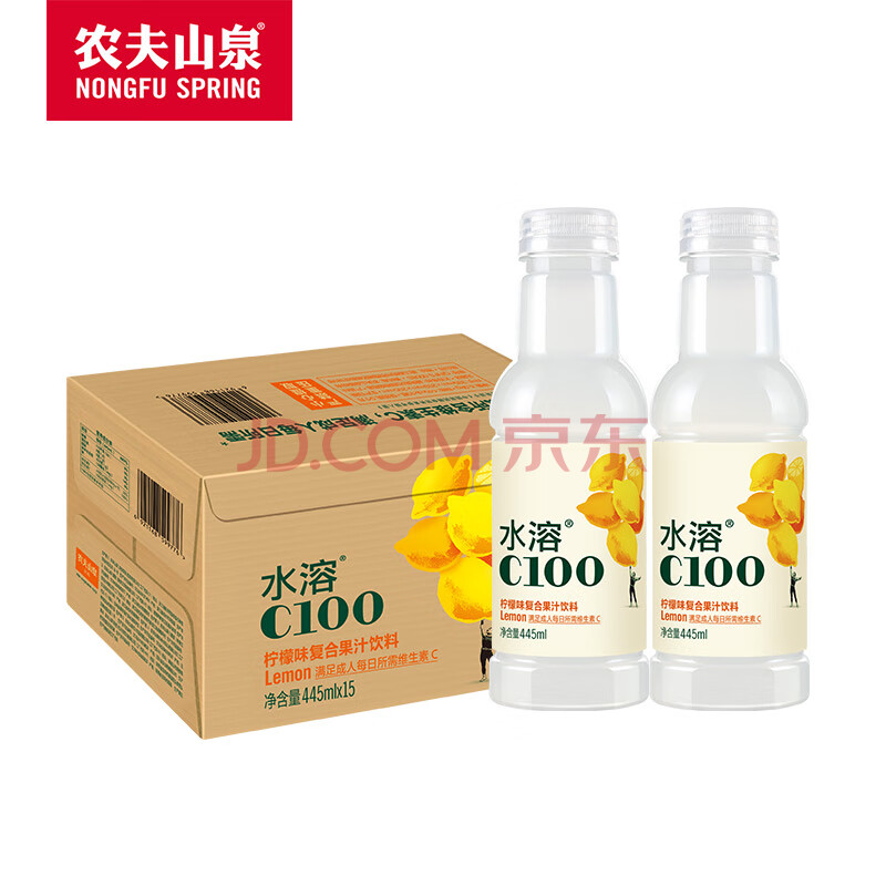 商品相册:农夫山泉水溶C100柠檬味复合果汁饮料445ml*15瓶整箱满足每日维生素C第