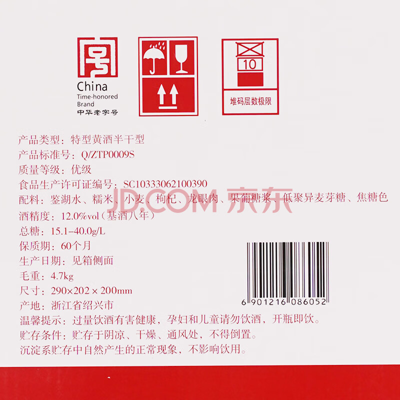 商品相册:塔牌 牡丹丽春八年 半干型 绍兴黄酒 375ml*6瓶 整箱装第