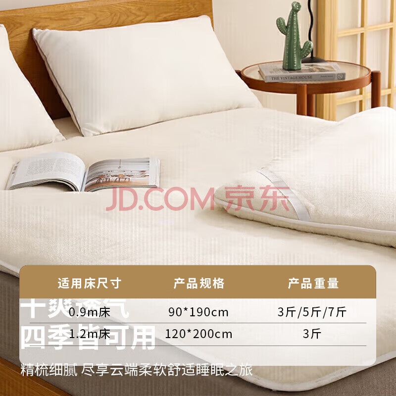 商品相册:雅鹿·自由自在 新疆棉花床垫褥子宿舍学生单人0.9米床铺底上下铺 3斤 90x190cm第