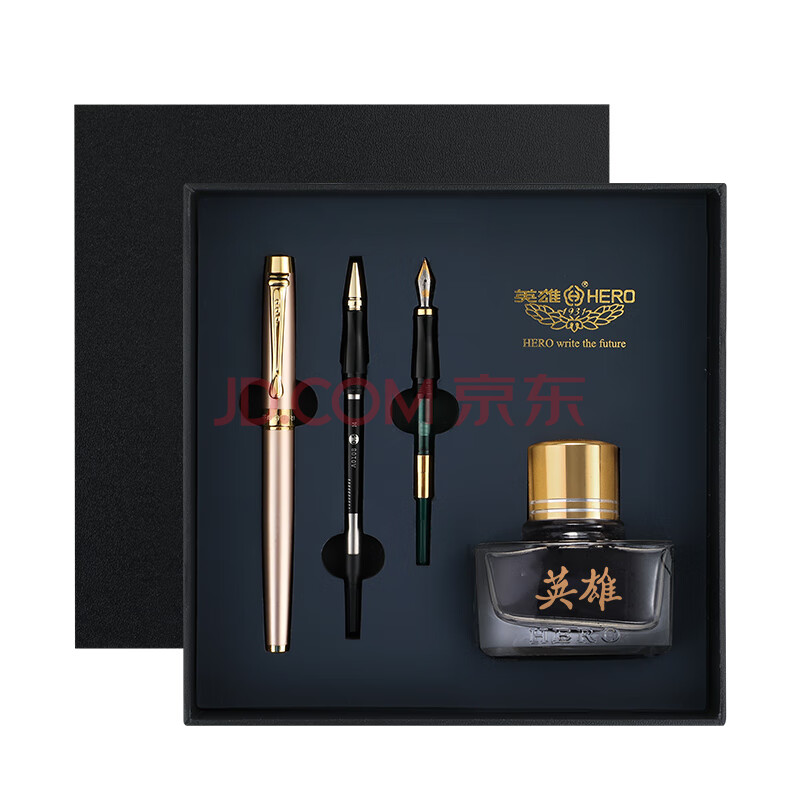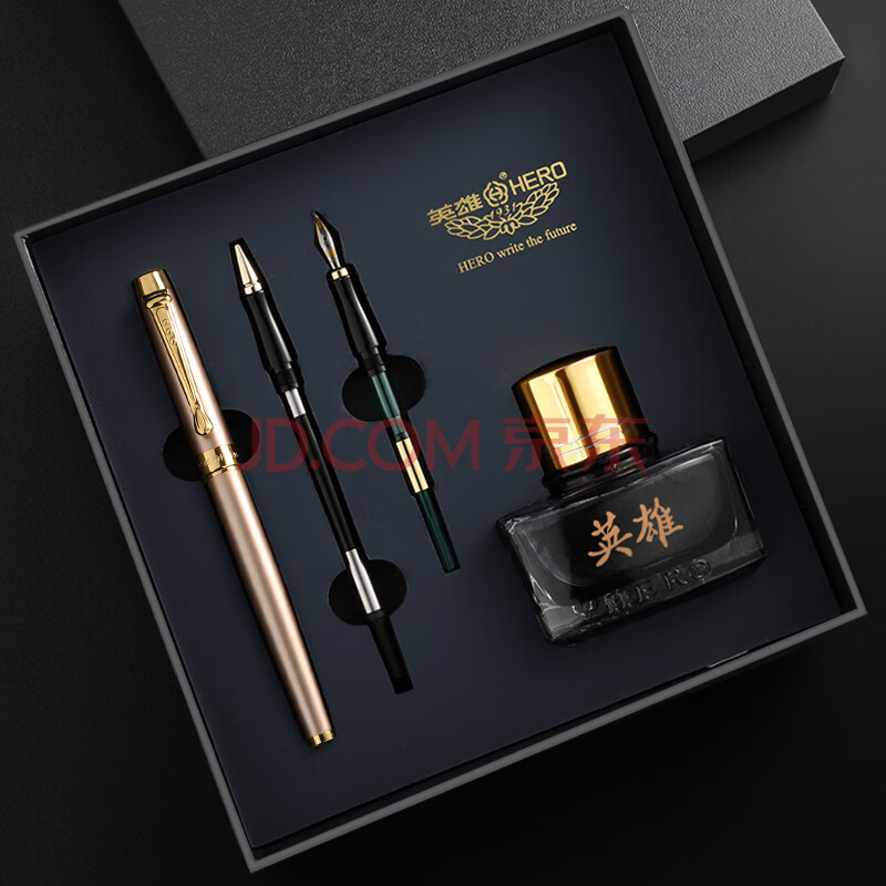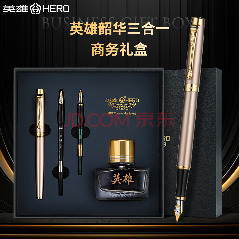 商品相册:英雄(HERO) 钢笔 【韶华系列】铱金笔/宝珠笔/美工笔三合一礼品墨水套装 金粉第