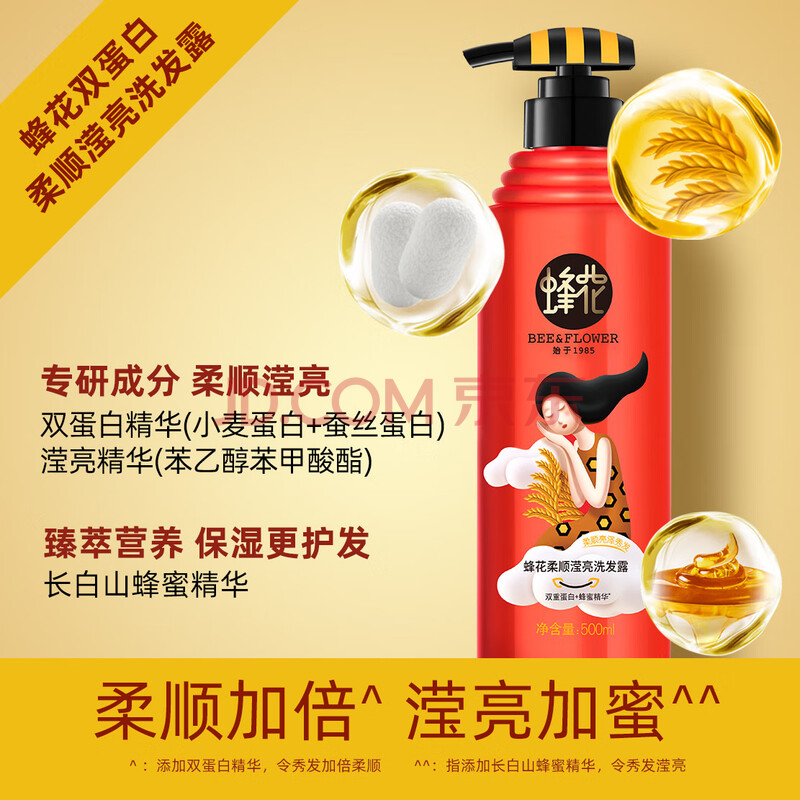 商品相册:蜂花大蜜罐洗发水双蛋白柔顺滢亮洗发露500ml受损发质含氨基酸第