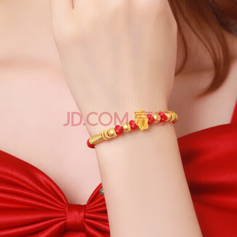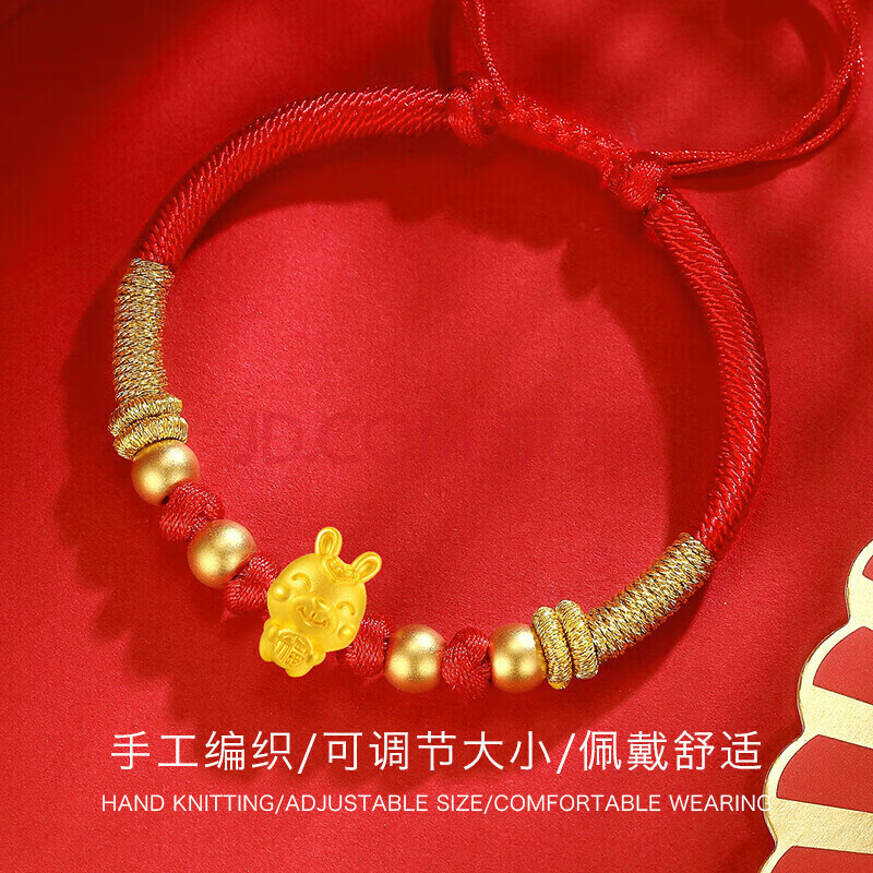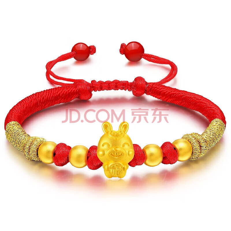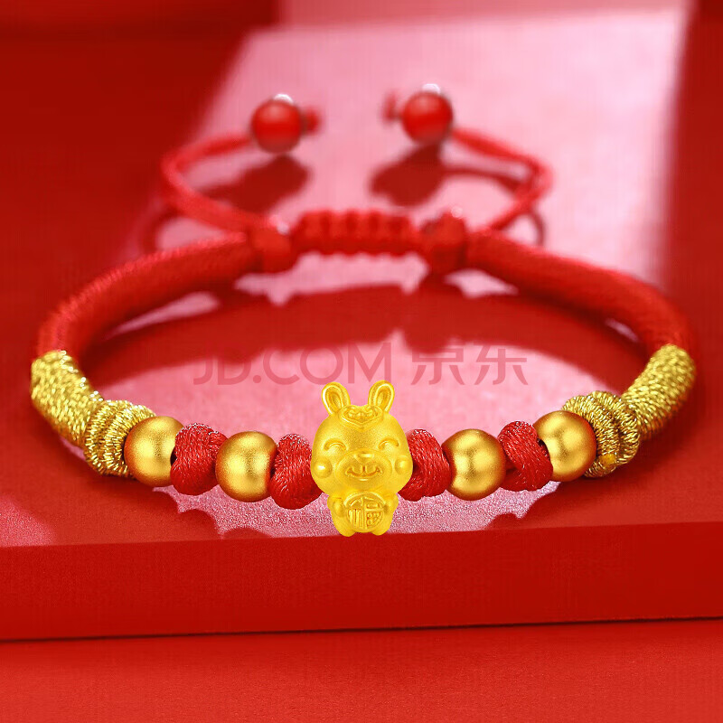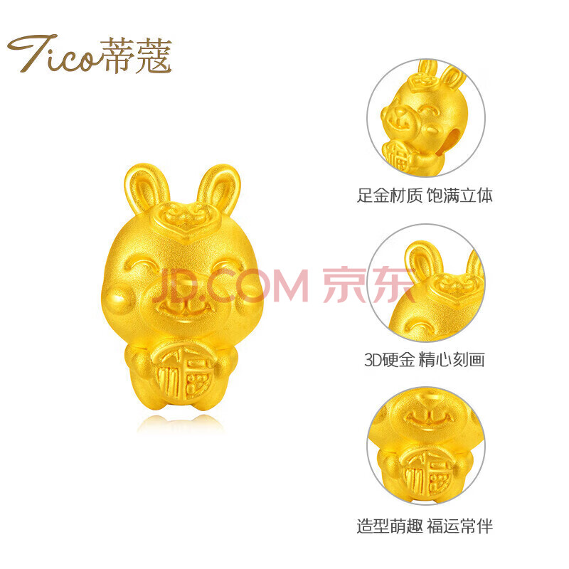 商品相册:蒂蔻(Tico)生日礼物本命年生肖兔足金福兔3D硬金古法金珠黄金转运珠手链女第