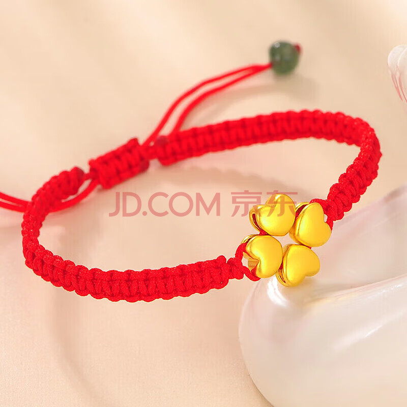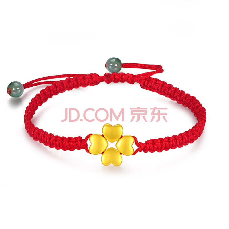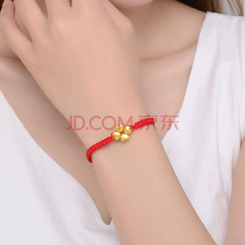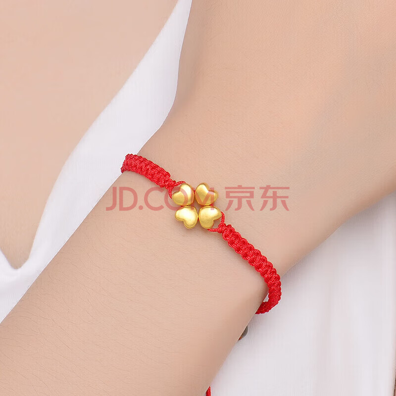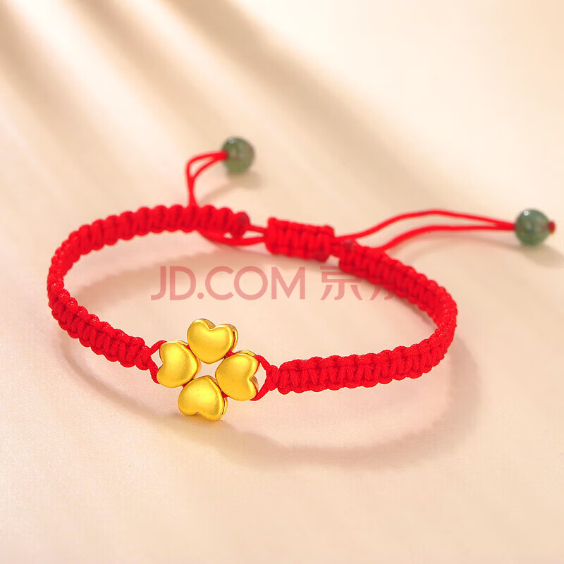 商品相册:蒂蔻(Tico)幸运四叶草爱心形黄金转运珠手链女3D硬足金红绳手饰生日礼物第