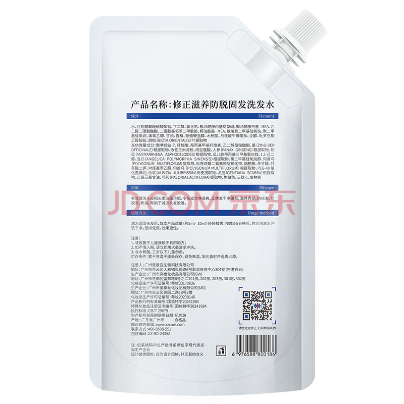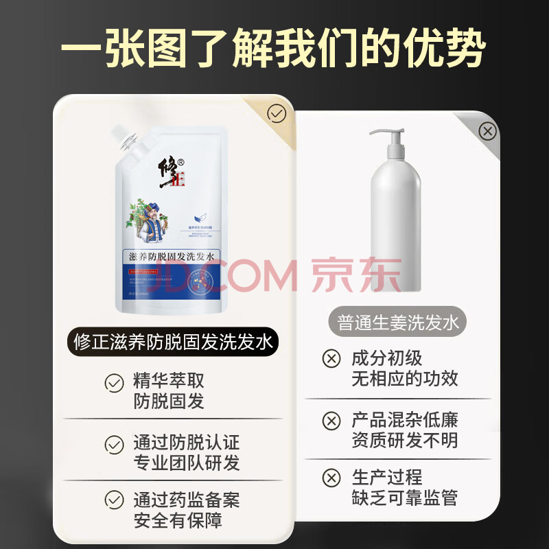 商品相册:修正滋养防脱固发洗发水2袋套装 防脱育发液生姜养发固发防掉强根第