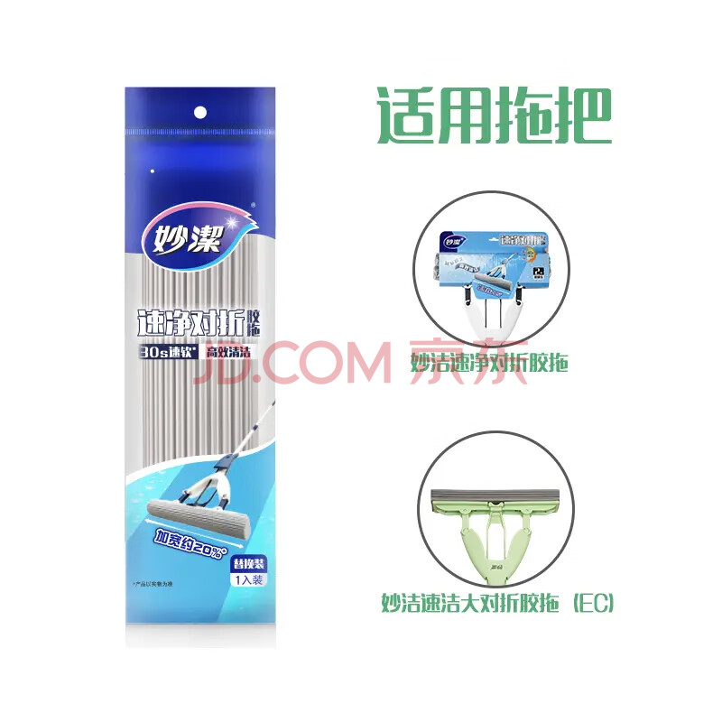 商品相册:妙洁胶棉拖把头33cm共1头对折式速净对折胶拖替换装30S速软海绵第