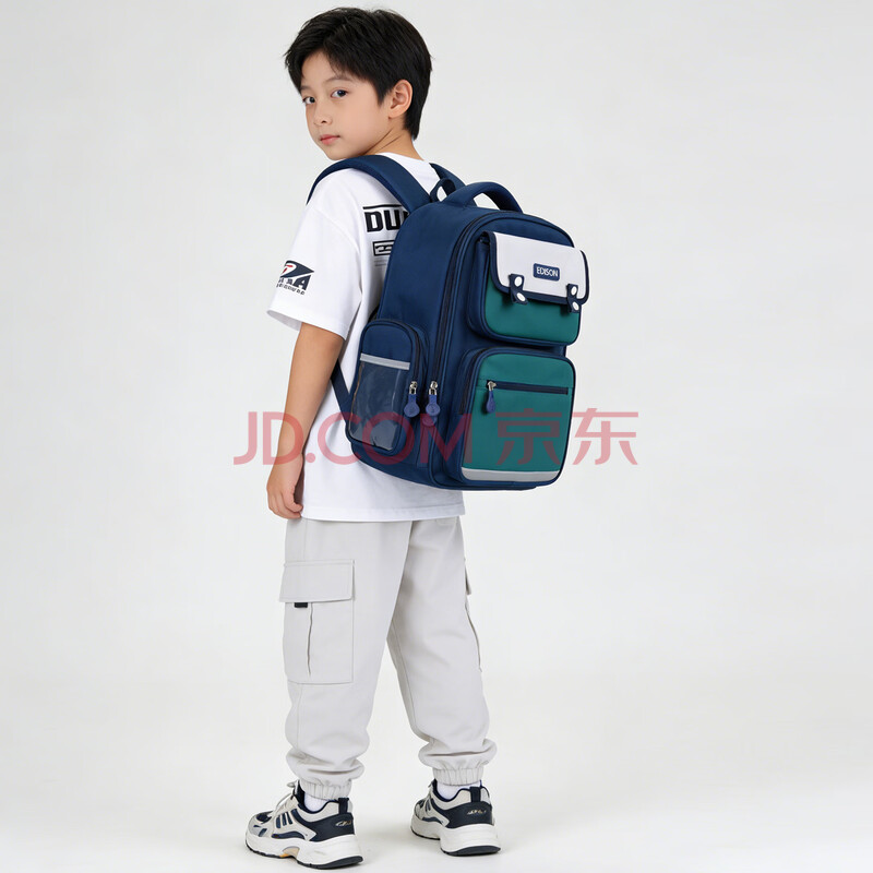 商品相册:Edison爱迪生小学生书包护脊减负反光大容量防泼水防下坠儿童背包2213-1第