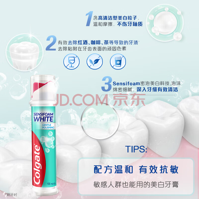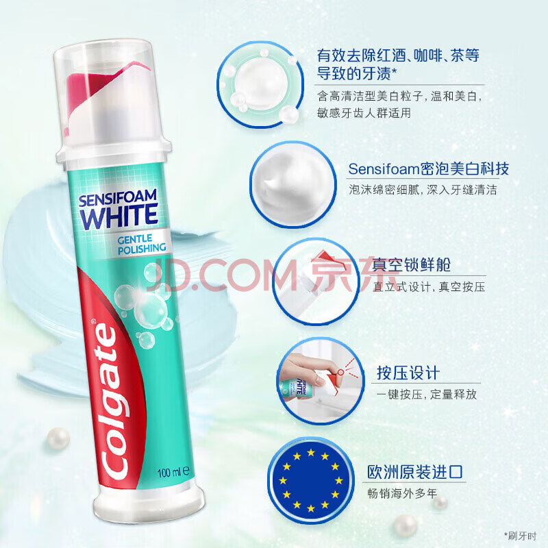 商品相册:高露洁(Colgate)【孙颖莎同款】欧洲进口密泡美白直立按压泵式牙膏100ml*3去渍第