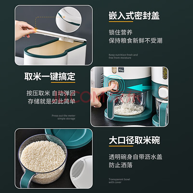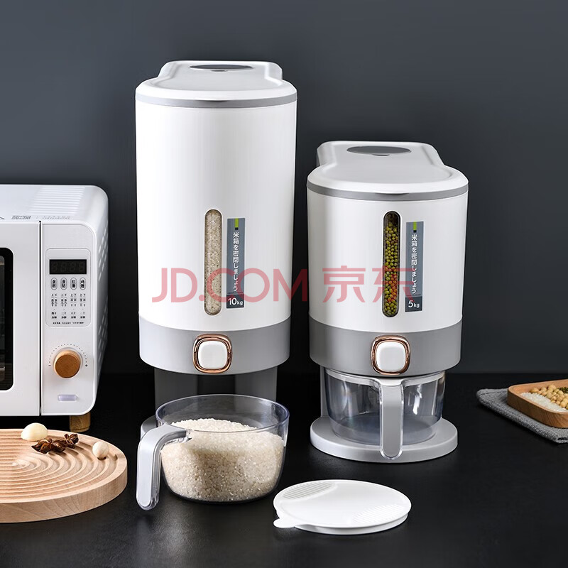商品相册:JEKO&JEKO装米桶防虫防潮密封食品级自动出大米收纳盒米缸储米箱 浅灰10斤第