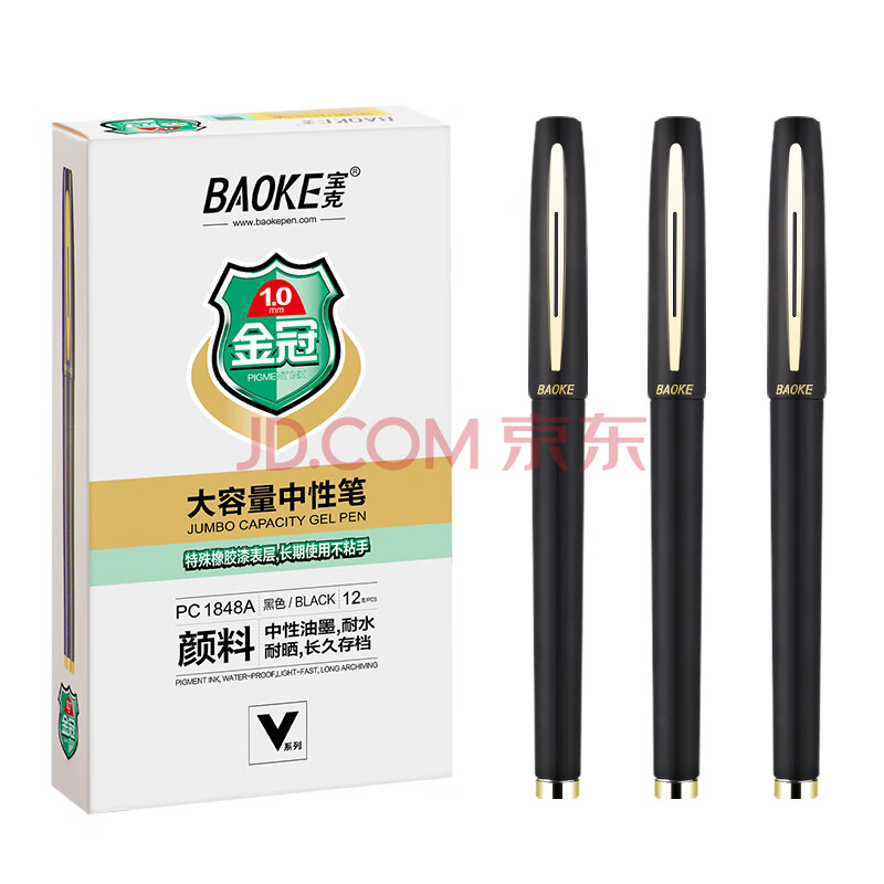 商品相册:宝克(BAOKE)宝克 BAOKE PC1848A 大容量中性笔1.0mm 日常书写办公签字笔水笔 黑色 12支/盒第
