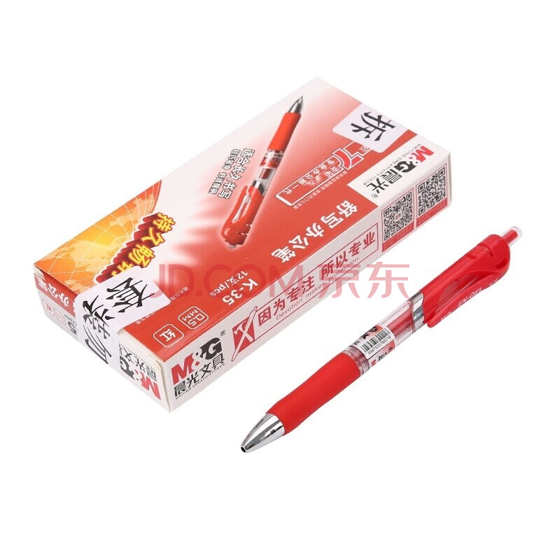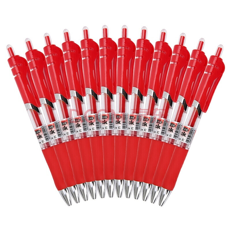 商品相册:晨光 按动中性笔0.5黑水笔签字笔碳素学生用考试文具用品水性笔 红色 12支装 第