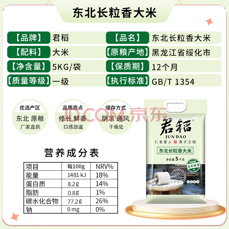 商品相册:君稻 东北长粒香大米10斤装 当季鲜香 东北大米5kg 粳米 年货送礼第
