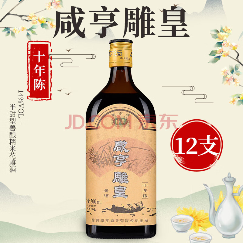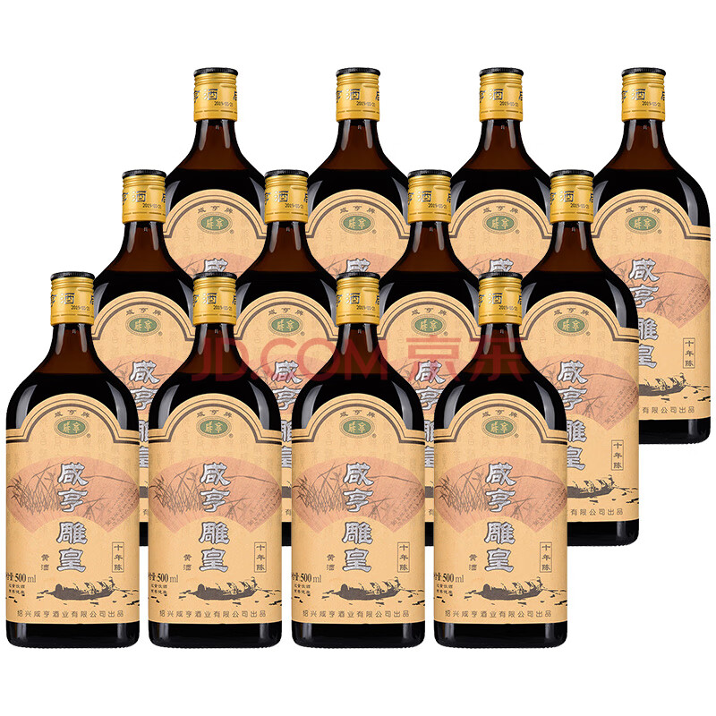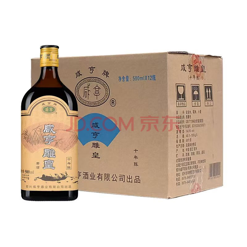 商品相册:咸亨牌 黄酒雕皇十年陈酿半甜型传统绍兴花雕糯米老酒500ml*12瓶整箱装第