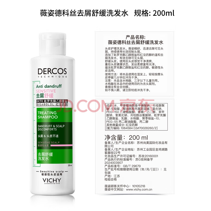 商品相册:薇姿(VICHY)【马柏全同款】粉标去屑洗发水无硅油舒缓敏感头皮洗发露200ml第