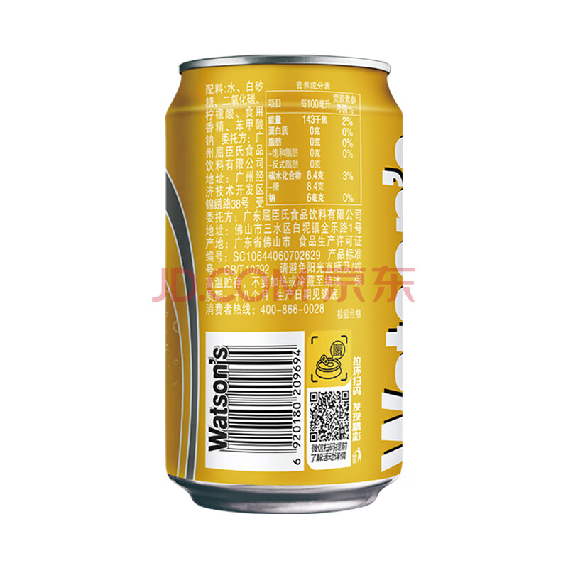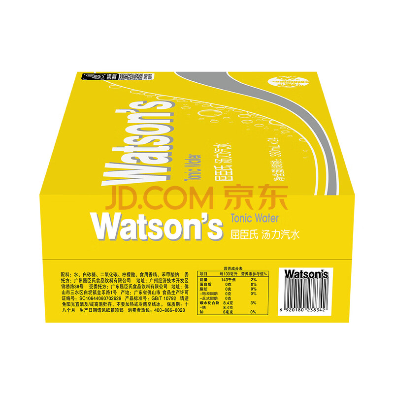 商品相册:屈臣氏(Watsons)汤力水风味苏打水0脂饮料含汽气泡水聚会调酒330mL*24罐整箱第1张/共7