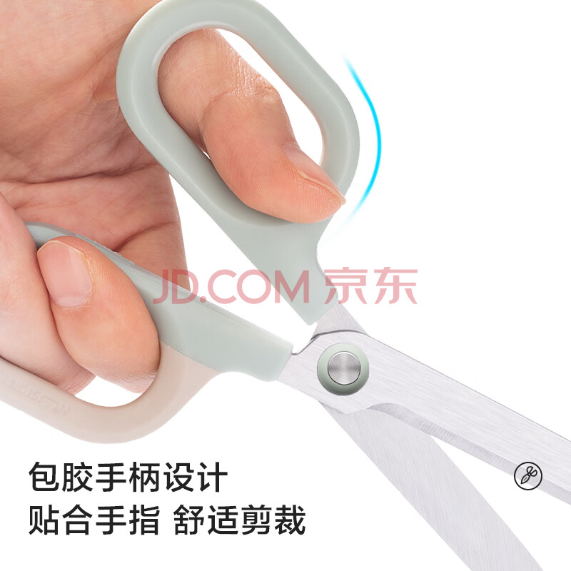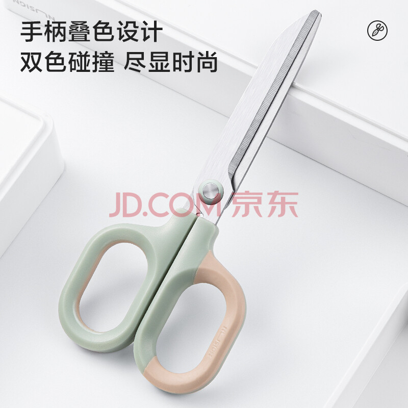 商品相册:得力小号弧形剪片省力剪刀 德国创意设计 主副双拼色设计办公文具/家用 绿色NS056第