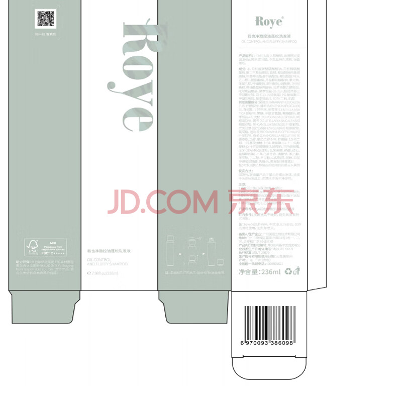 商品相册:roye若也【龚俊同款】控油蓬松洗发水清爽去油蓬松高颅顶洗发液236ml第