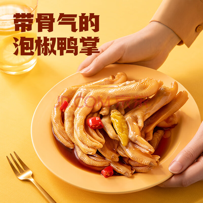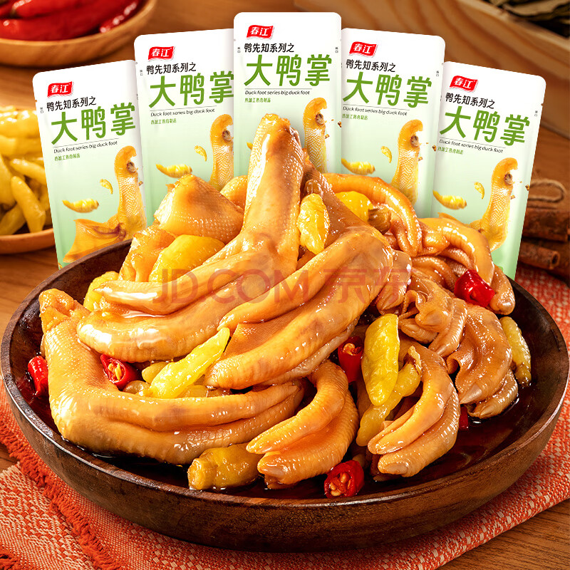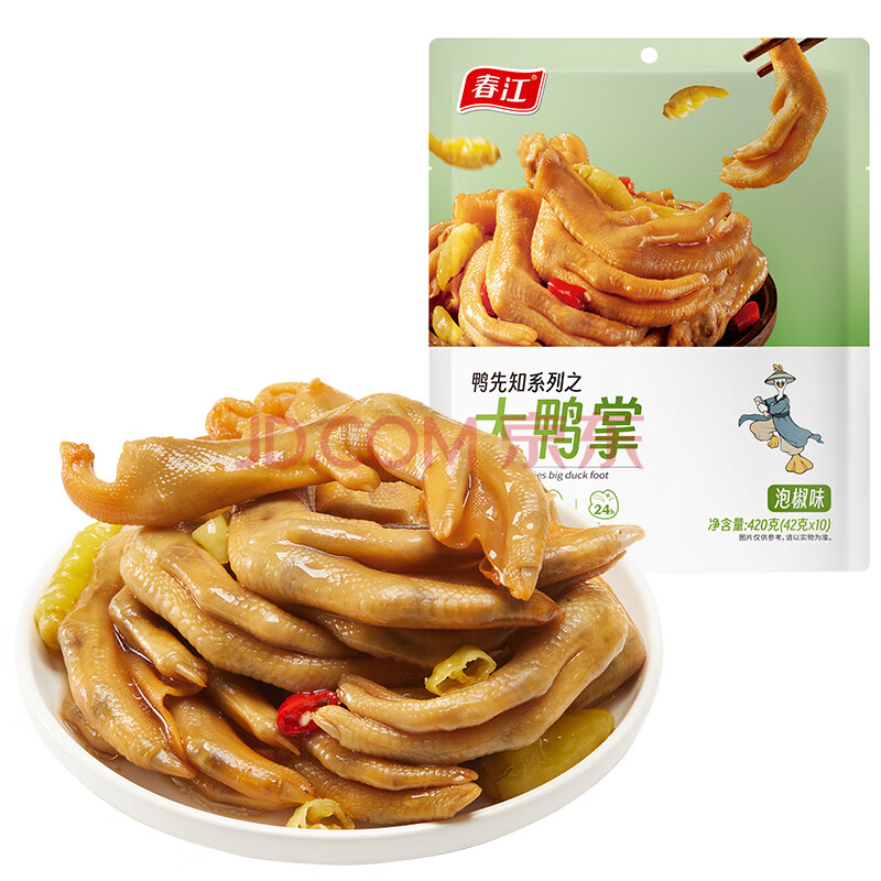 商品相册:春江鸭掌 经典泡椒有骨大鸭爪 卤味休闲解馋零食鸭肉熟食鸭货420g第