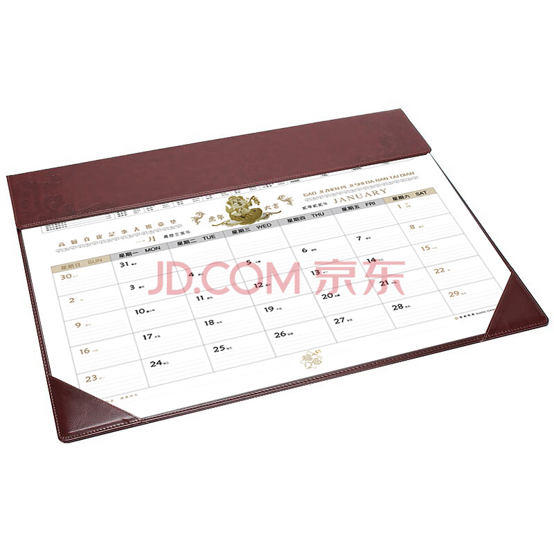 商品相册:信发DB-8281 2022年虎年大班台历台垫 创意桌面摆件皮质变色革日历月历记事计划表(棕红色)第