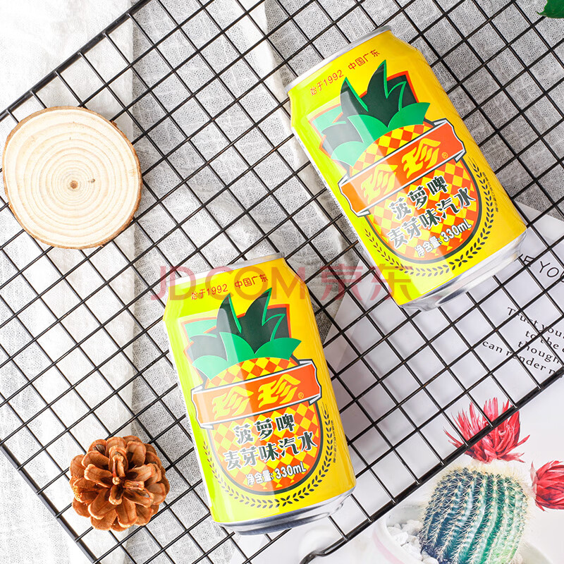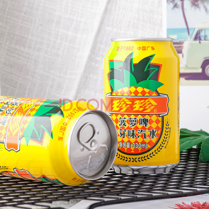 商品相册:珍珍菠萝啤 麦芽味汽水碳酸饮料 330ml*24听整箱装第