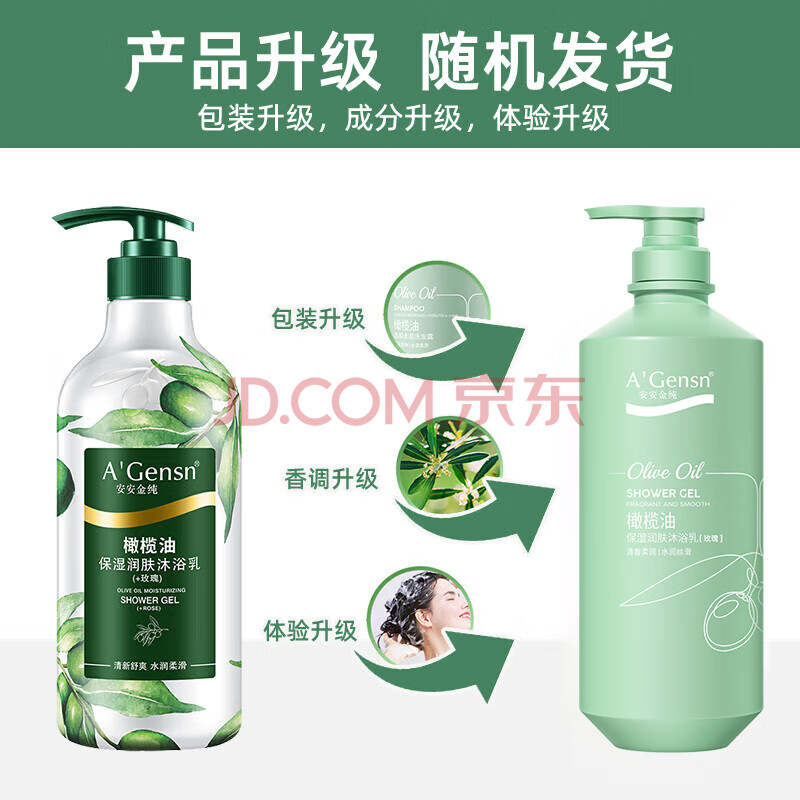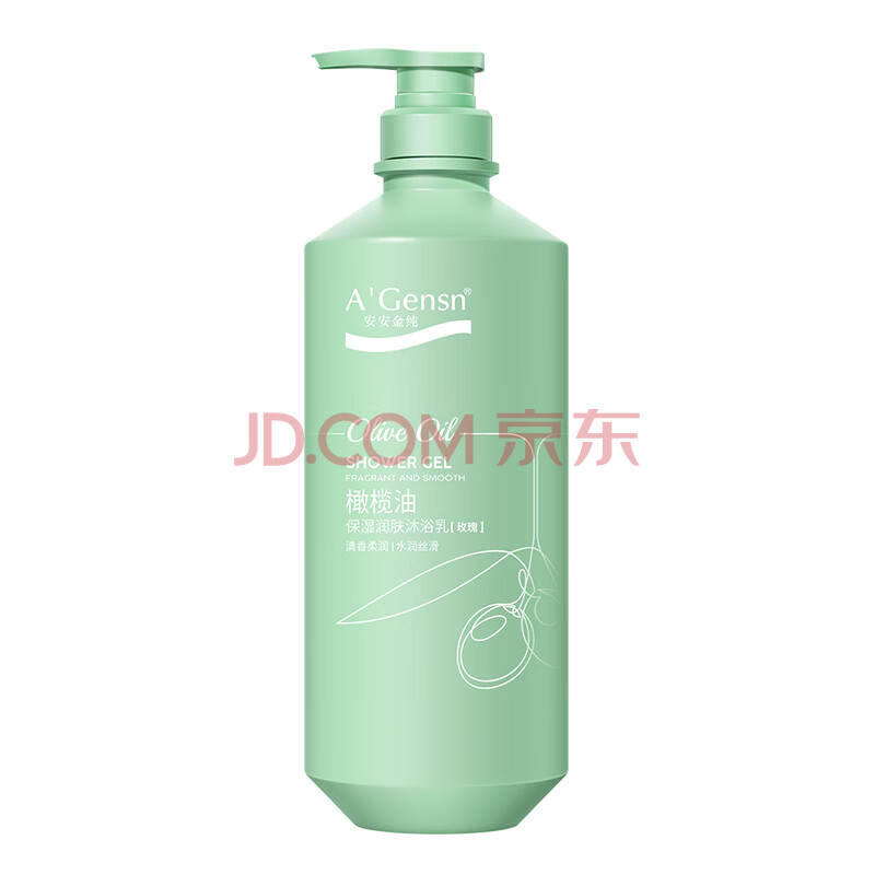 商品相册:安安金纯A'Gensn橄榄油保湿润肤沐浴露(+玫瑰)750g 滋润保湿第