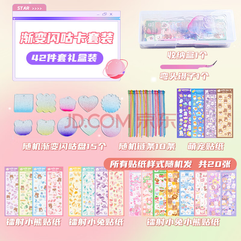 商品相册:法拉蒙咕卡贴纸套装女孩儿童玩具全套材料包估卡盘贴纸工具贴画随心配diy咕咔收纳盒 渐变闪粉咕卡套装第