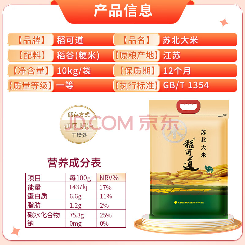 商品相册:稻可道苏北大米 圆粒大米20斤(10公斤)第